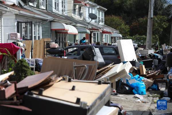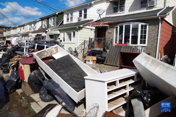 9月3日,在美国纽约昆斯区,街边堆放着被损毁的家具。