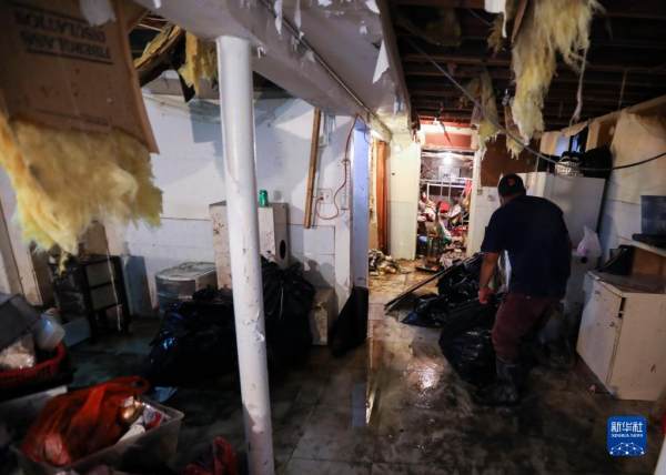 9月3日,在美国纽约昆斯区,工人清理一座房屋的地下室。